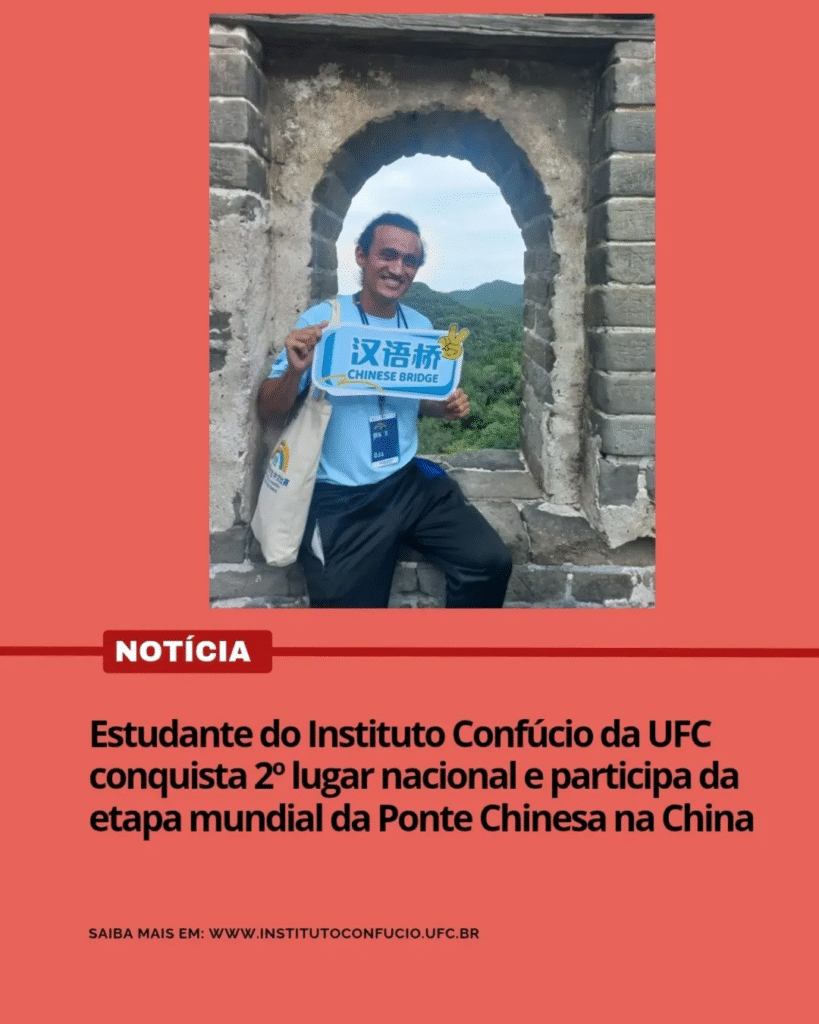 Yansley Sena, estudante do curso avançado do Instituto Confúcio da UFC e graduando em Letras Inglês (Noturno), conquistou o 2º lugar na Etapa Nacional da 24ª Competição Ponte Chinesa de Mandarim para Universitários, realizada em 17 de maio deste ano.