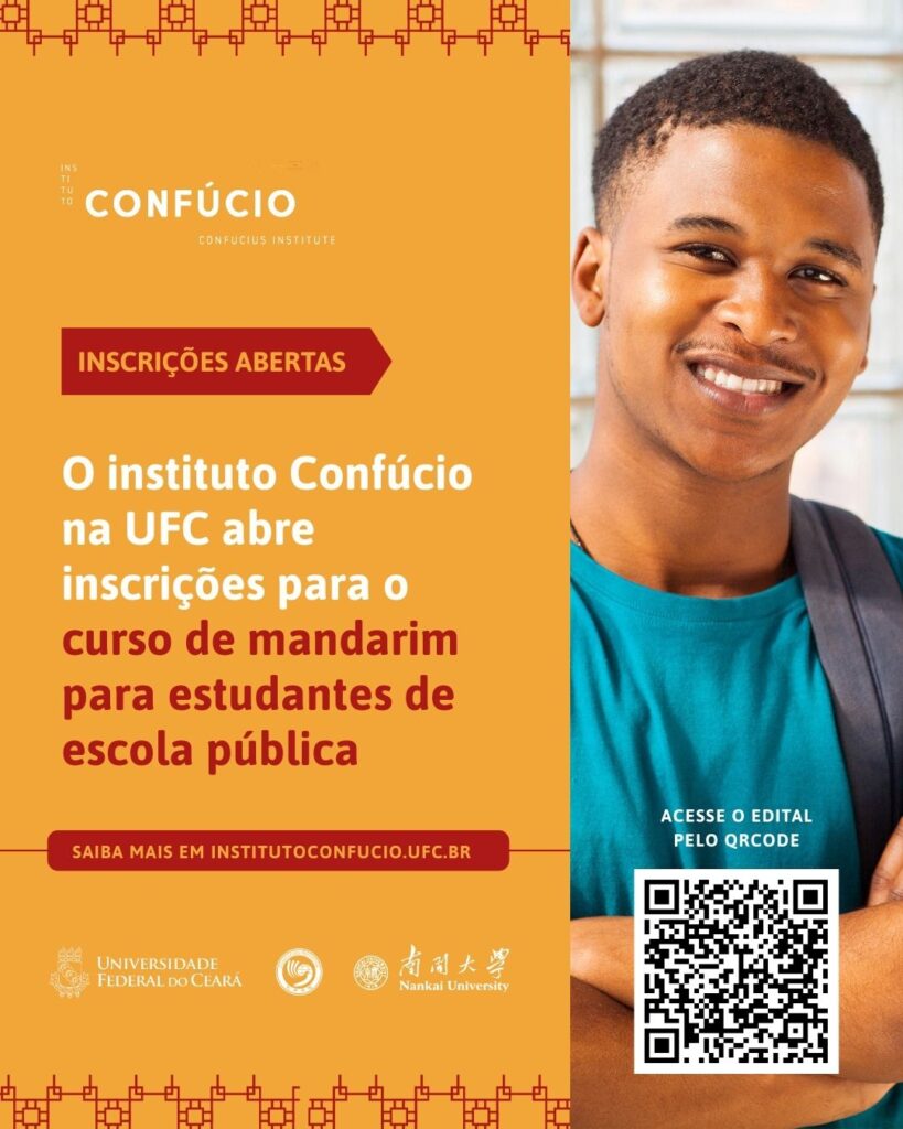 O Instituto Confúcio na Universidade Federal do Ceará (UFC), em parceria com a Pró-Reitoria de Inovação e Relações Interinstitucionais (PROINTER), anuncia a abertura de 80 vagas para o Curso On-line de Mandarim, totalmente gratuito, destinado a estudantes regularmente matriculados no Ensino Médio da Rede Pública de Ensino do Ceará (escolas estaduais ou federais). As inscrições estão abertas de 13 de janeiro a 24 de fevereiro de 2026.